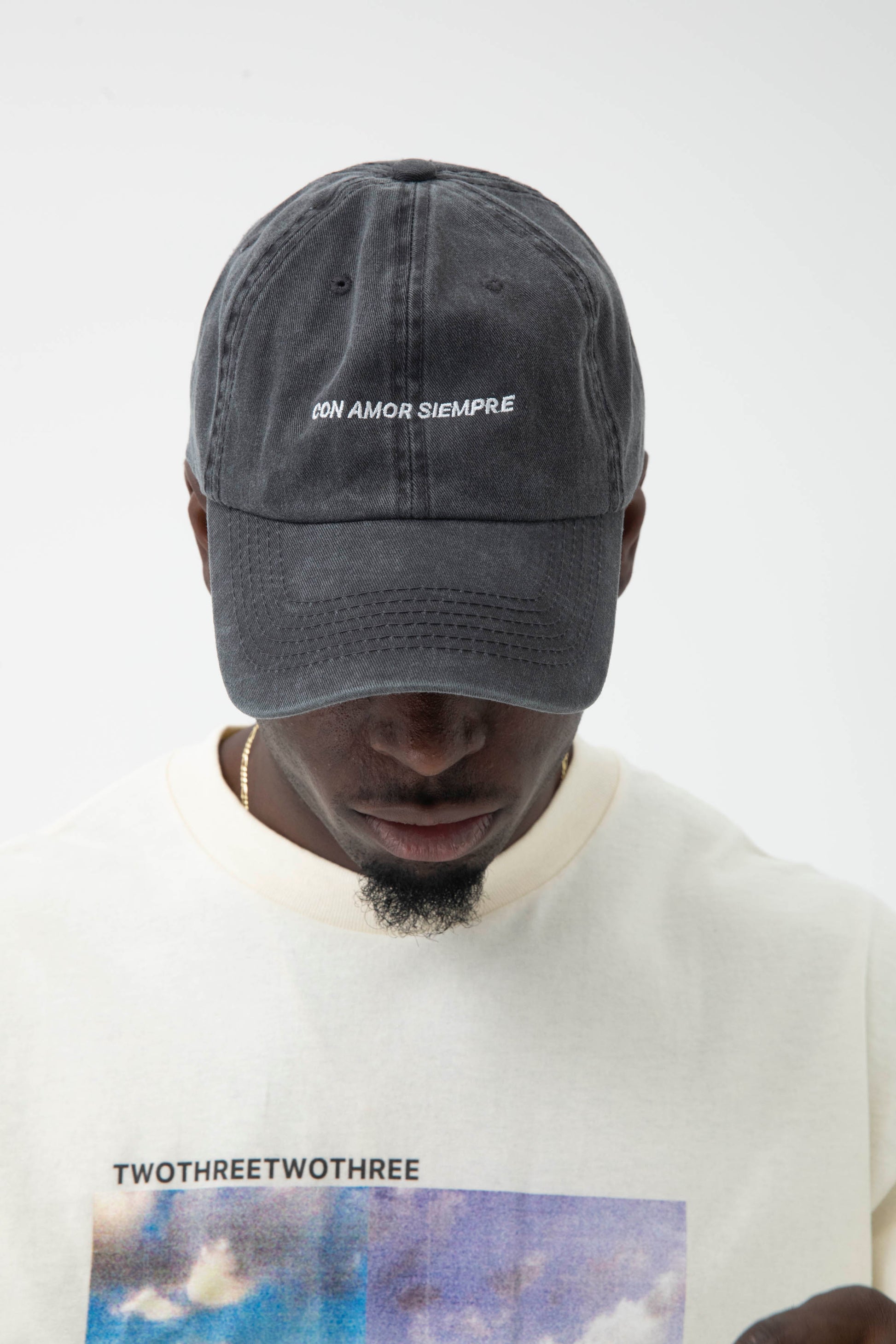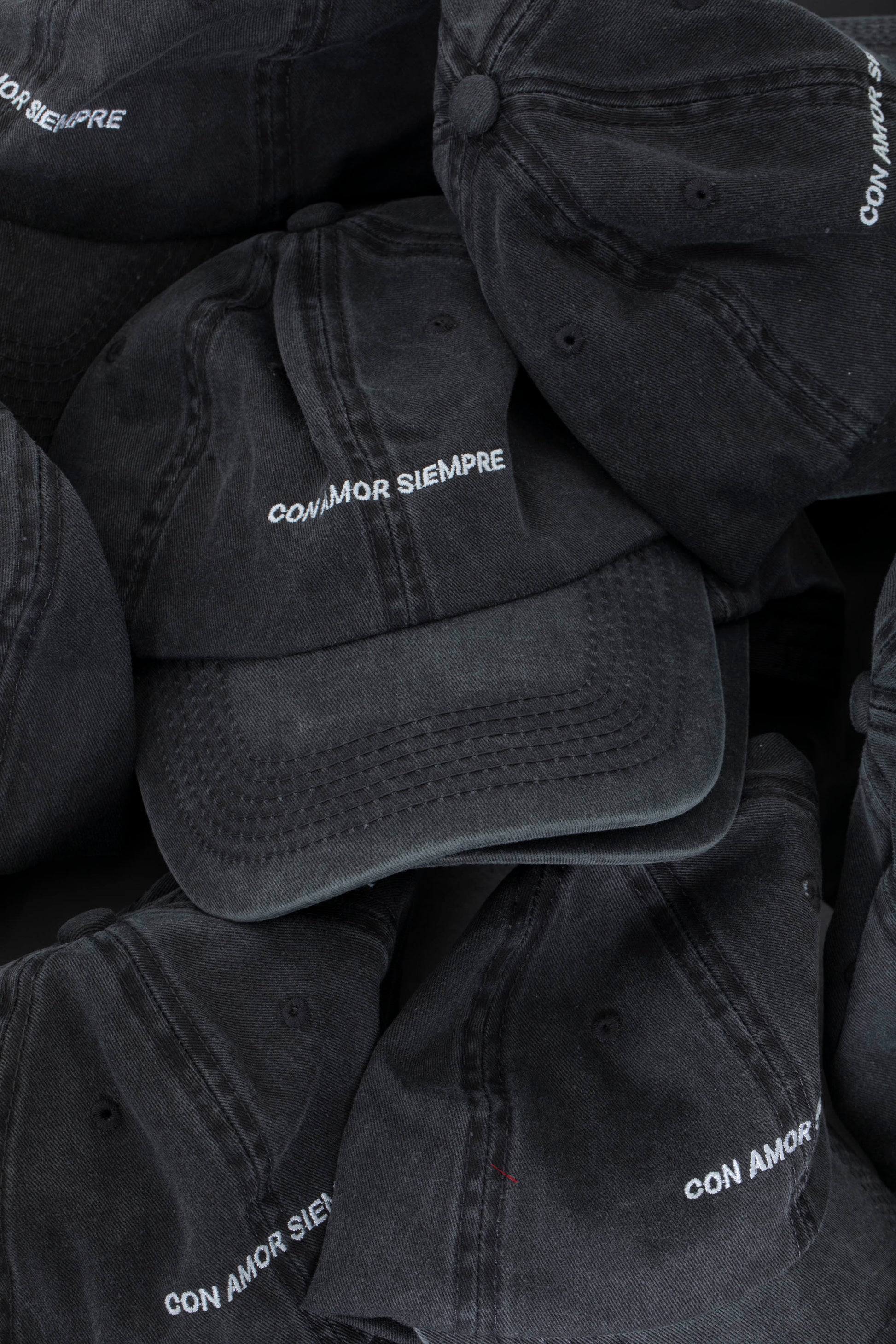 Our 'Halo Hats' is a custom piece that is limited edition. With white embroidery and metal clasp, carry 'Con Amor Siempre' everywhere you go.